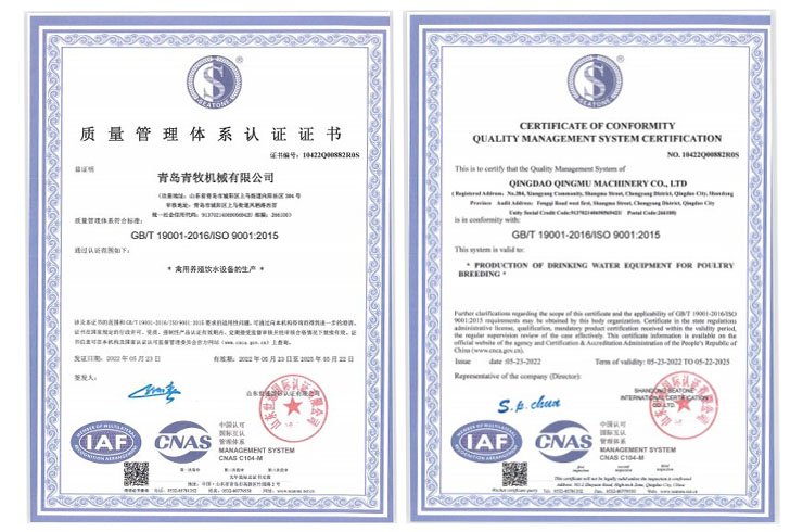 青島青牧機(jī)械有限公司成立于2013年,是一家集研發(fā)、生產(chǎn)、銷售、服務(wù)于一體的綜合性企業(yè)。公司專注于家禽飲水設(shè)備的研發(fā)和生產(chǎn),擁有專業(yè)的研發(fā)團(tuán)隊(duì)、先進(jìn)的加工設(shè)備以及自動(dòng)化組裝線,力求打造“簡(jiǎn)單、高效、環(huán)保”的高端禽用飲水系統(tǒng)。